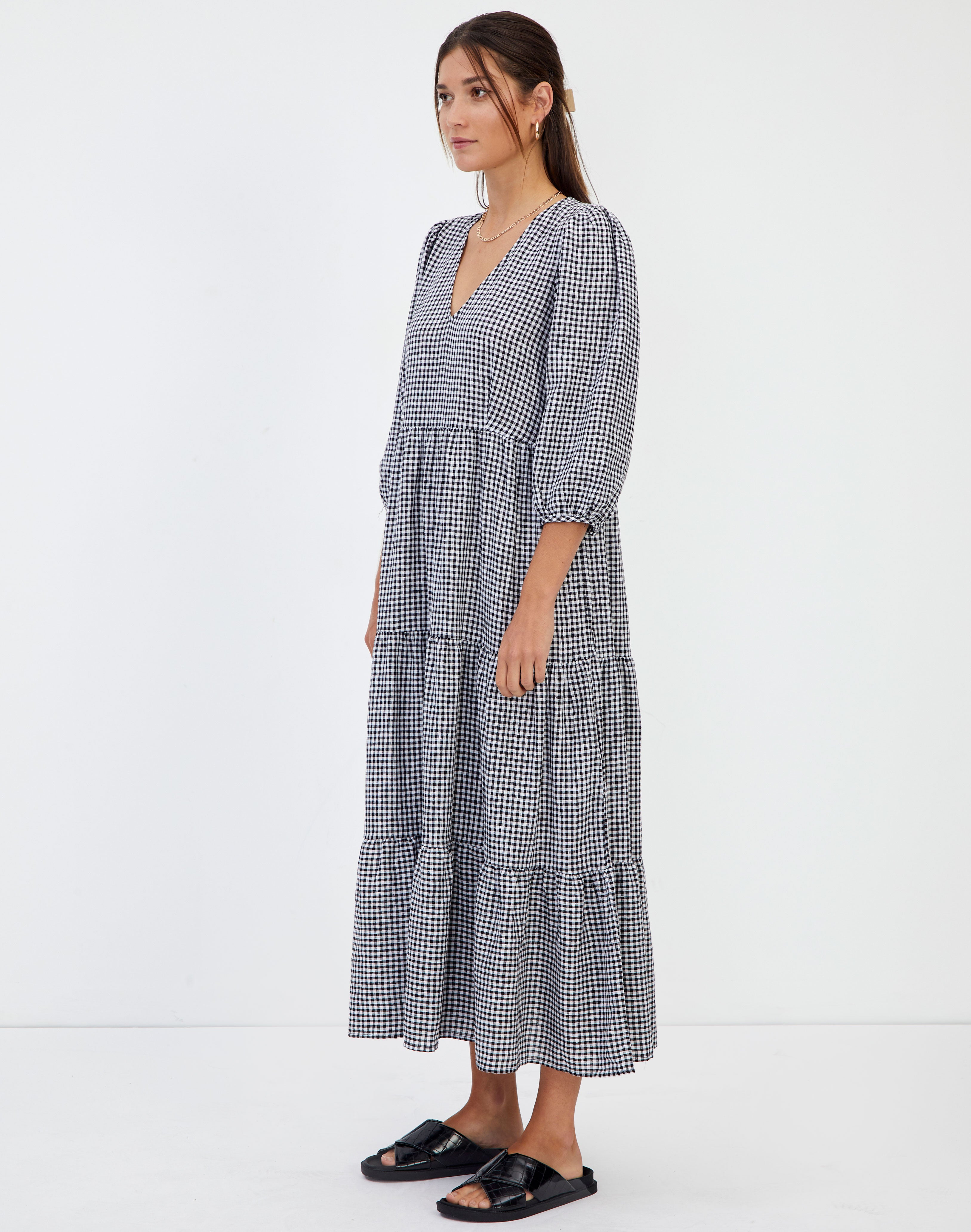 Gingham Puff Long Sleeve Tiered Midi Dress. Get a Sale Alert. A Great Selection of Clothing.